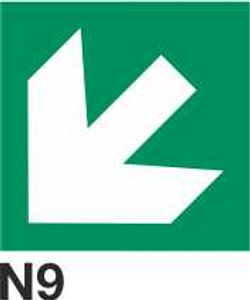 Merki sem leiðbeina um staðsetningu neyðarútganga ef hætta setðjar að (græn og hvít)